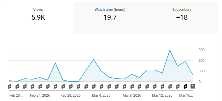 Like TikTok, YouTube has seen tremendous growth as the 100 Years Later series continues to drive traffic. Viewership during this period fell just shy of 6,000 total views, coming to 19.7 hours of total watch time. There was also a gain of 18 subscribers in the 25-day period.